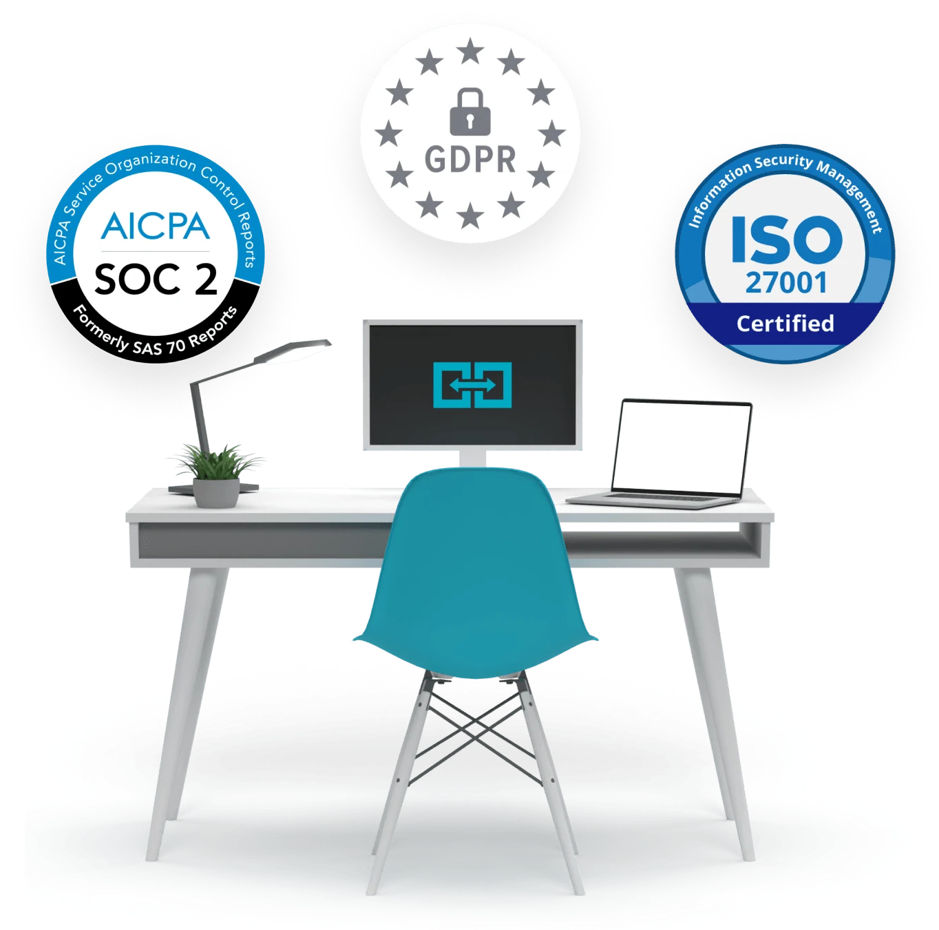 Certified to GDPR, SOC 2 (AICPA), ISO 27001, ISO 27701, ISO 14001, and ISO 9001 standards.